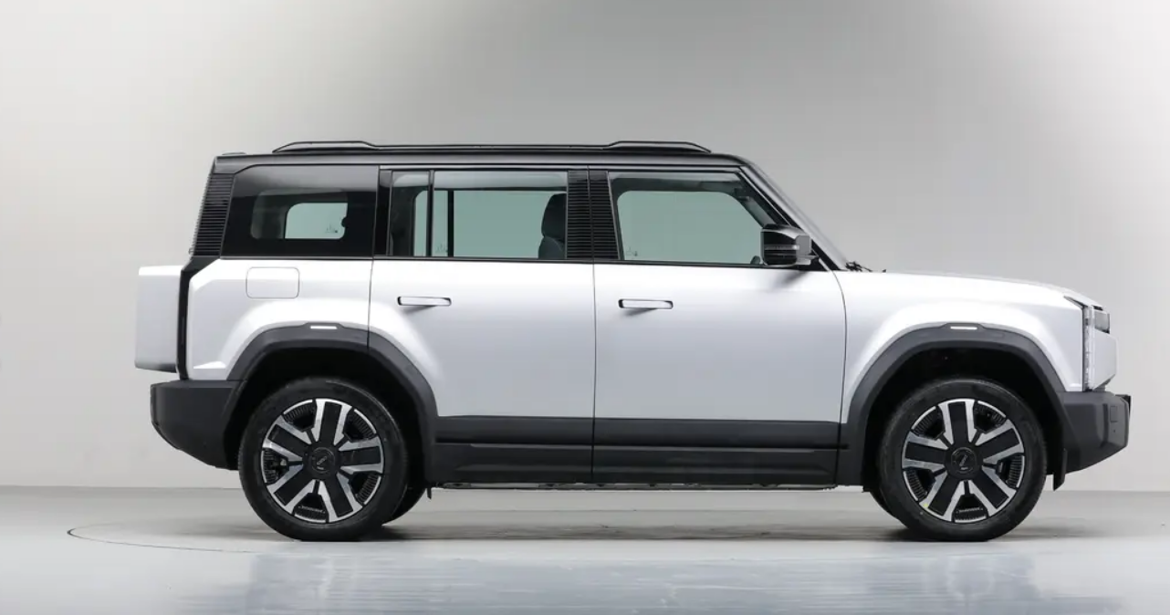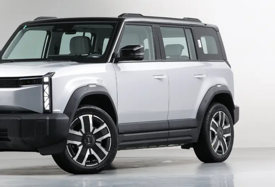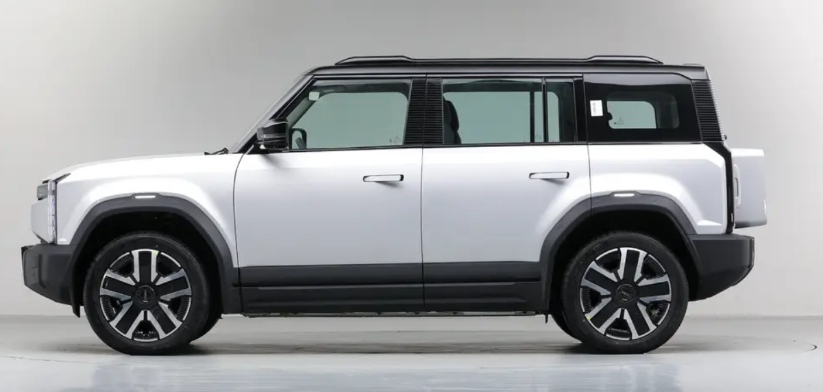 侧面轮廓方正笔直,熏黑的车顶和车窗不仅形成了悬浮式车顶的风格,还营造出双色拼接的效果,增强了个性氛围,显得侧面更加时尚且大气。车门部分整体设计较为笔直,连贯的角线连接到隐藏式门把手,增强了整体感。向外扩展的侧裙还嵌入了熏黑饰板,与下面的18/19英寸轮毂相结合,增添了一种力量感。在车身尺寸方面,新车长4406毫米,宽1910毫米,高1715毫米,轴距2715毫米,得益于方方正正的造型,因此也是保证后排的头部空间,以及横向空间,所以乘坐三位成年人也不会觉得拥挤,头部剩余2拳多,腿部也可以翘起二郎腿,侧面还有放电功能,非常适合户外露营。
